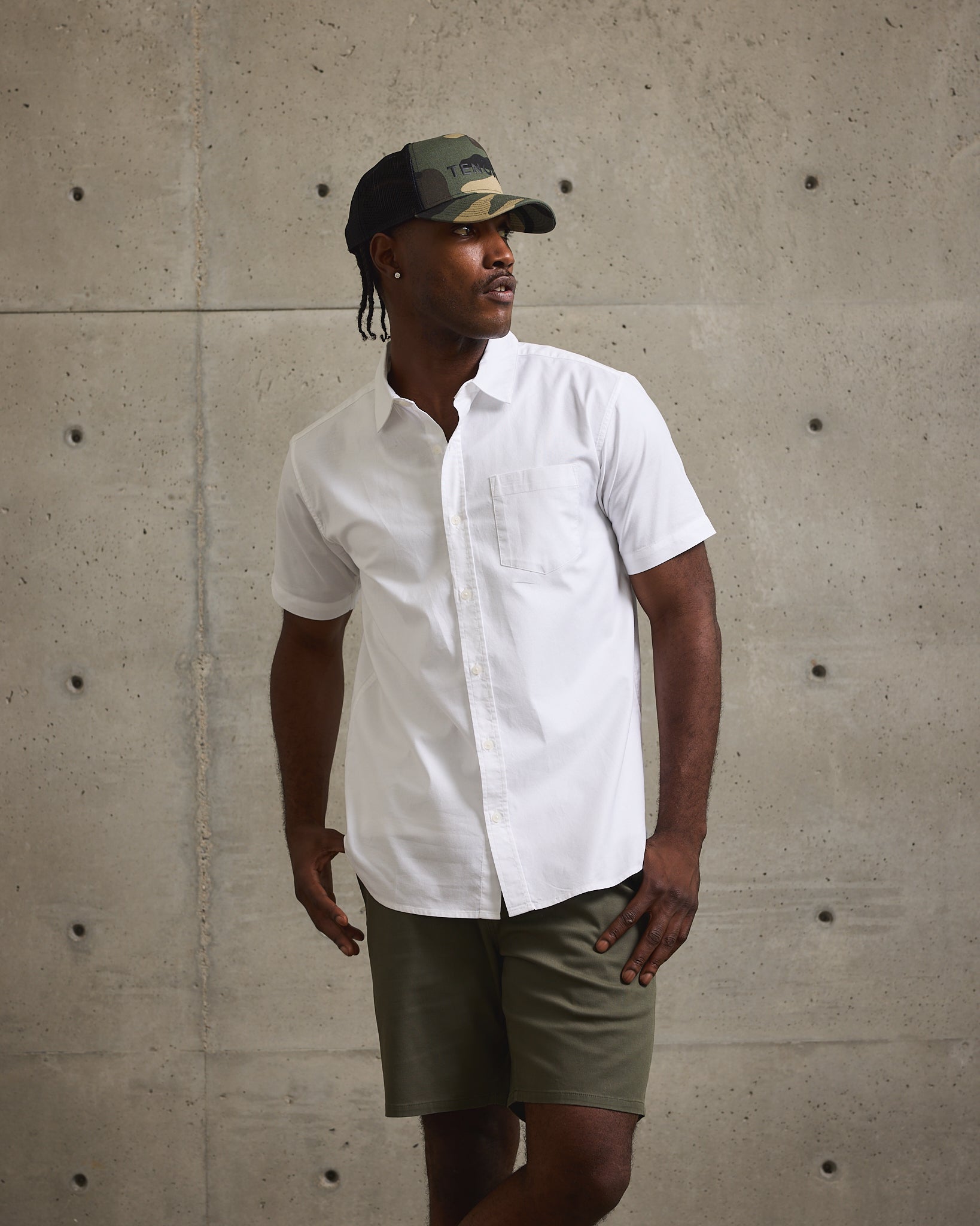 Everyday Oxford Short Sleeve, made complete with subtle stretch and tonal embroidery on front chest pocket. Available in three classic colorways.