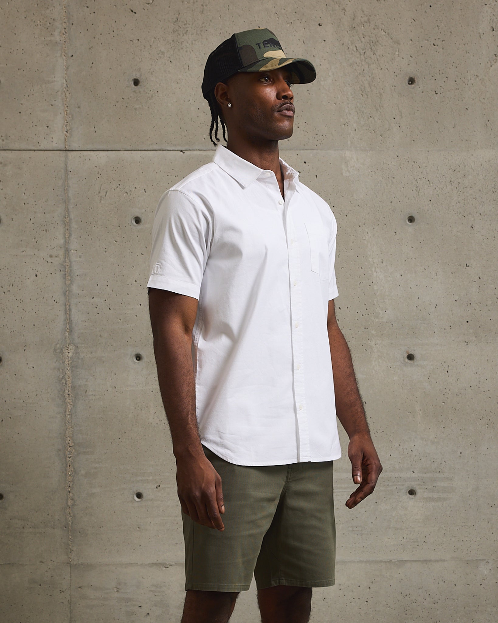 Everyday Oxford Short Sleeve, made complete with subtle stretch and tonal embroidery on front chest pocket. Available in three classic colorways.