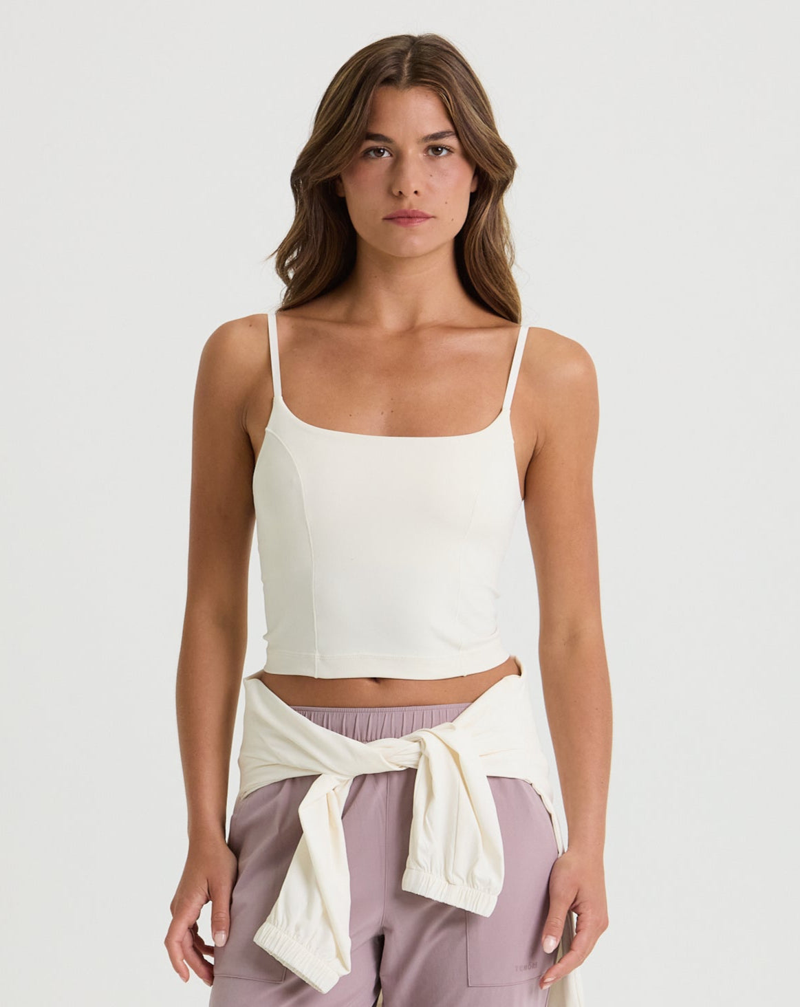 A graceful take on an active staple, the Ballerina Tank brings a touch of softness to your movement. With delicate satin elastic straps and princess seaming, it’s equal parts performance and poise—ideal for low-impact days, layering, or simply feeling beautiful in your own skin.
